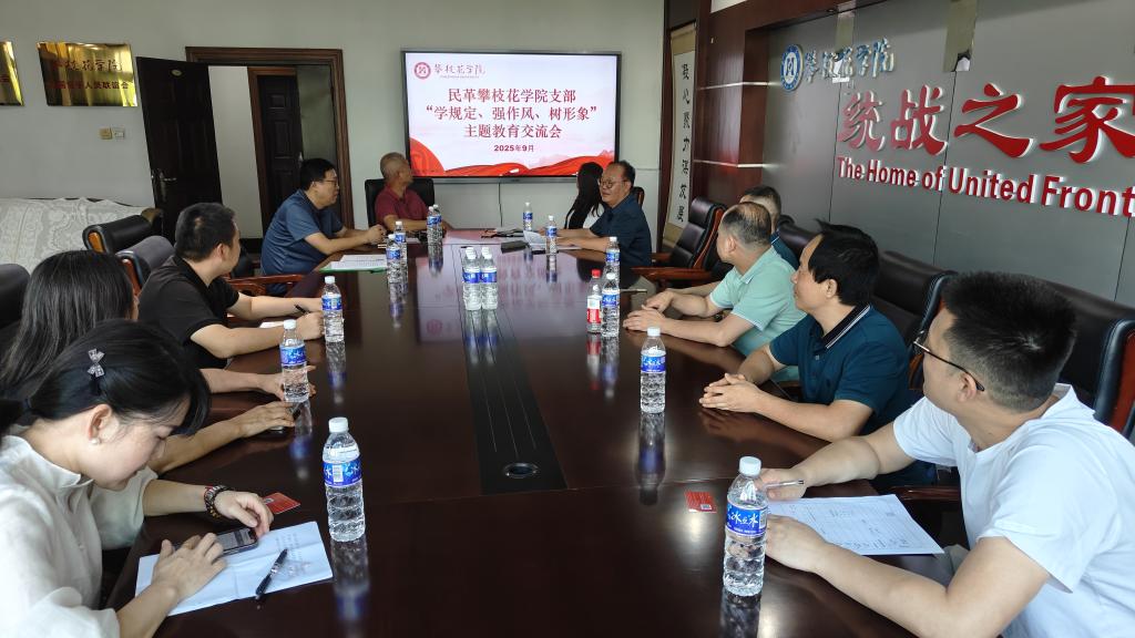 9月29日下午,民革攀枝花学院支部在攀枝花学院办公楼402“统战之家”召开深化“学规定、强作风、树形象”主题教育专题会。攀枝花学院统战部部长张勤出席会议,支部副主委刘红波主持会议。