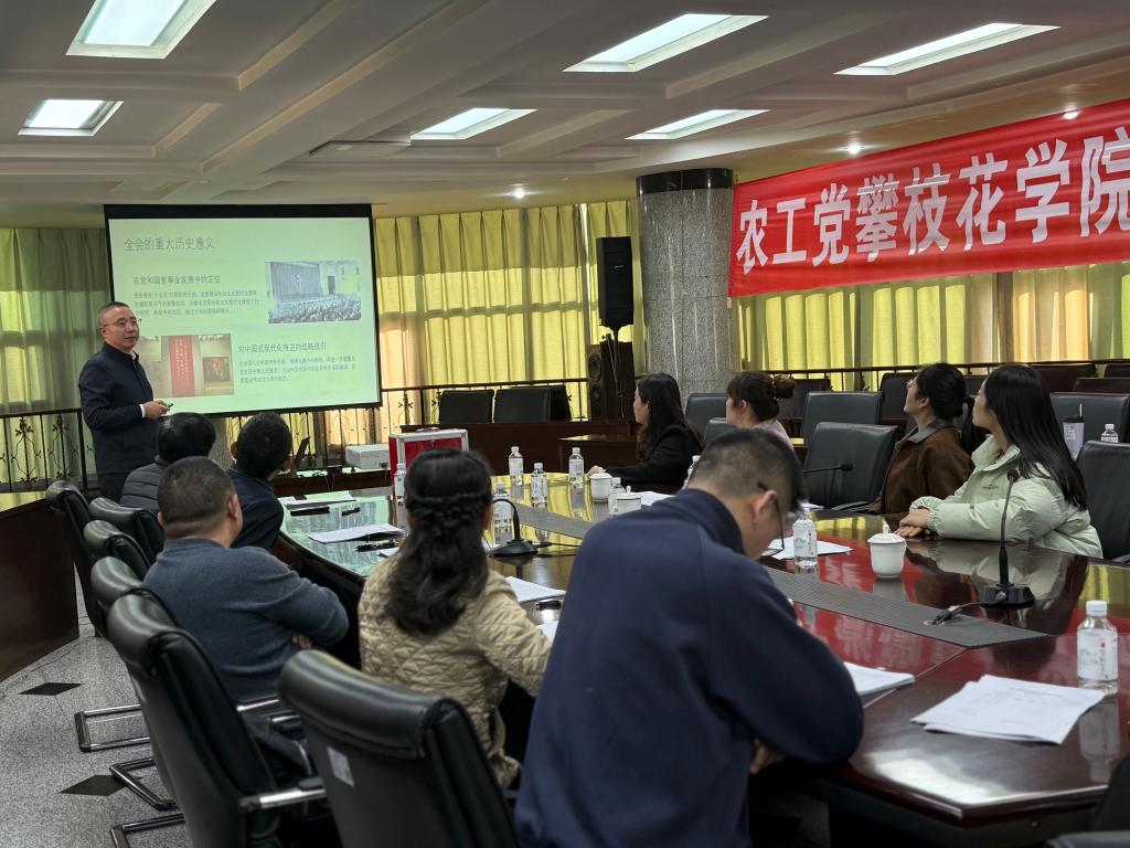 11月20日,农工党攀枝花学院总支召开中共二十届四中全会精神专题学习会,农工党攀枝花市委委员、攀枝花学院总支主委冯奇领学,总支全体委员和骨干党员参加学习。