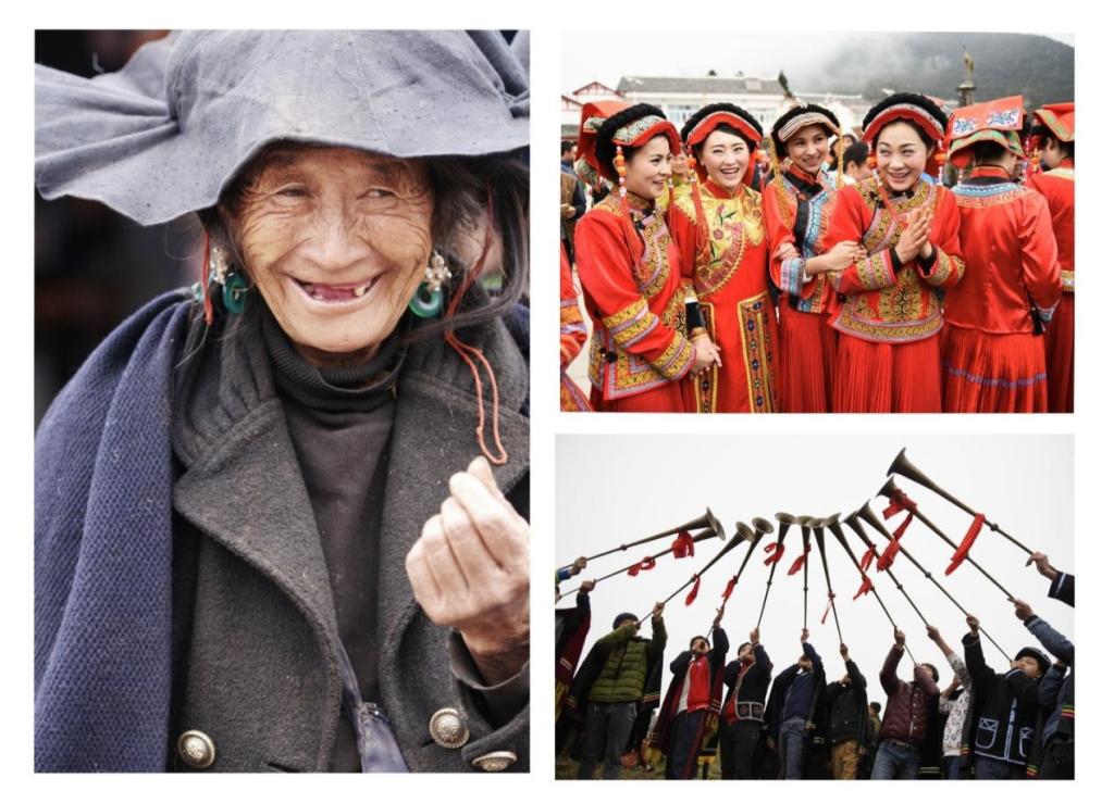 绚丽的民族服饰、传统地方乐器,属于非遗文化瑰宝。群众欢聚的场景洋溢着“家国同庆” 的浓厚氛围,将非遗文化与共同富裕的乡村发展图景相融合,体现出文化振兴与家国发展同频共振的美好画面。