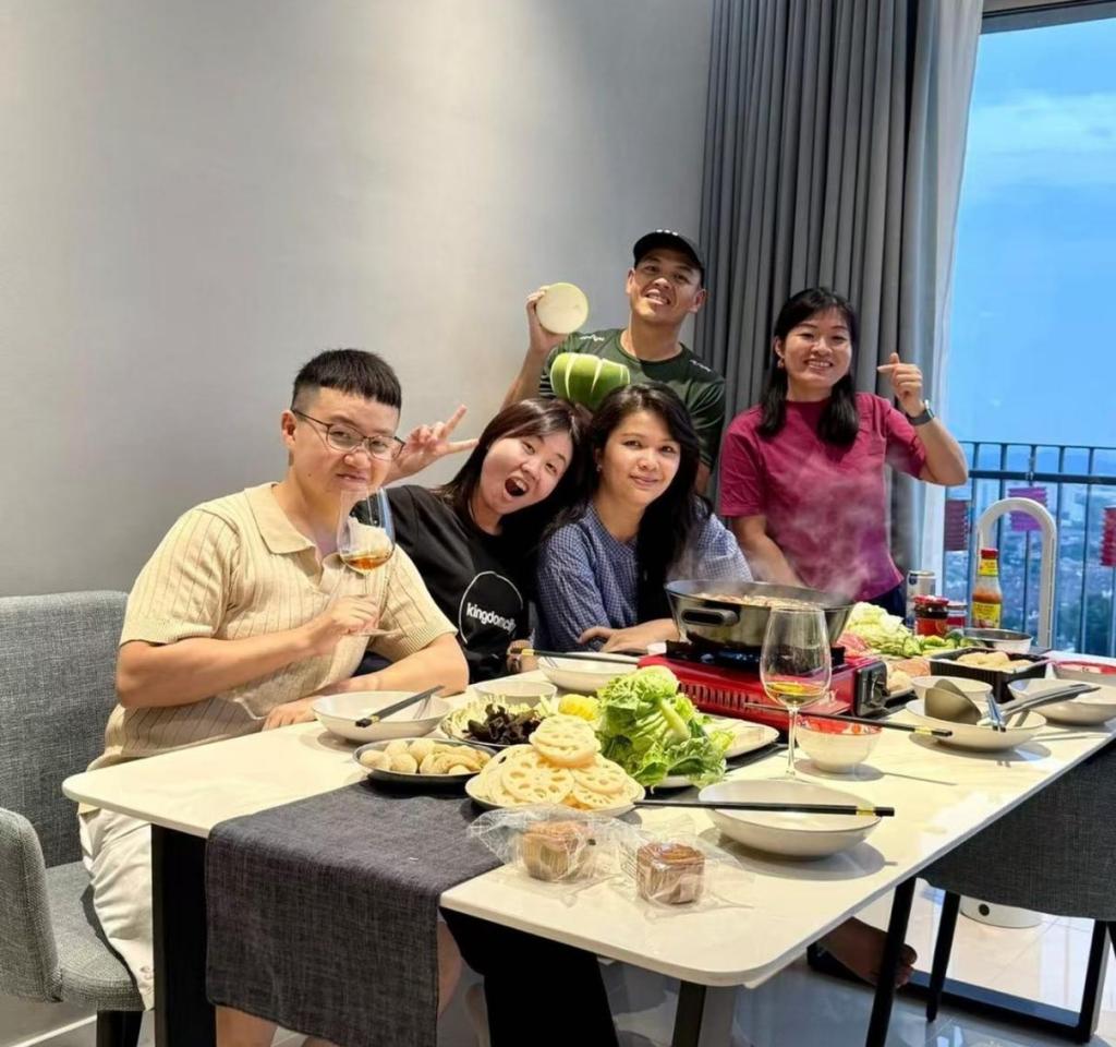 作品拍摄于马来西亚,记录了中秋节前夕五位年轻马来华人与留学生共度佳节的温情瞬间。窗外月色如水,室内热气腾腾,大家围坐一桌,举杯、品锅、分月饼,在异乡共同延续着“月圆人圆”的文化意象。这一刻,团圆不再局限于地理的距离,而成为跨越国界的情感共鸣。作品展现了当代青年华人在多元文化环境中坚守传统、共享团聚的温度,也寄托了海内外中华儿女共赏一轮明月的深情。