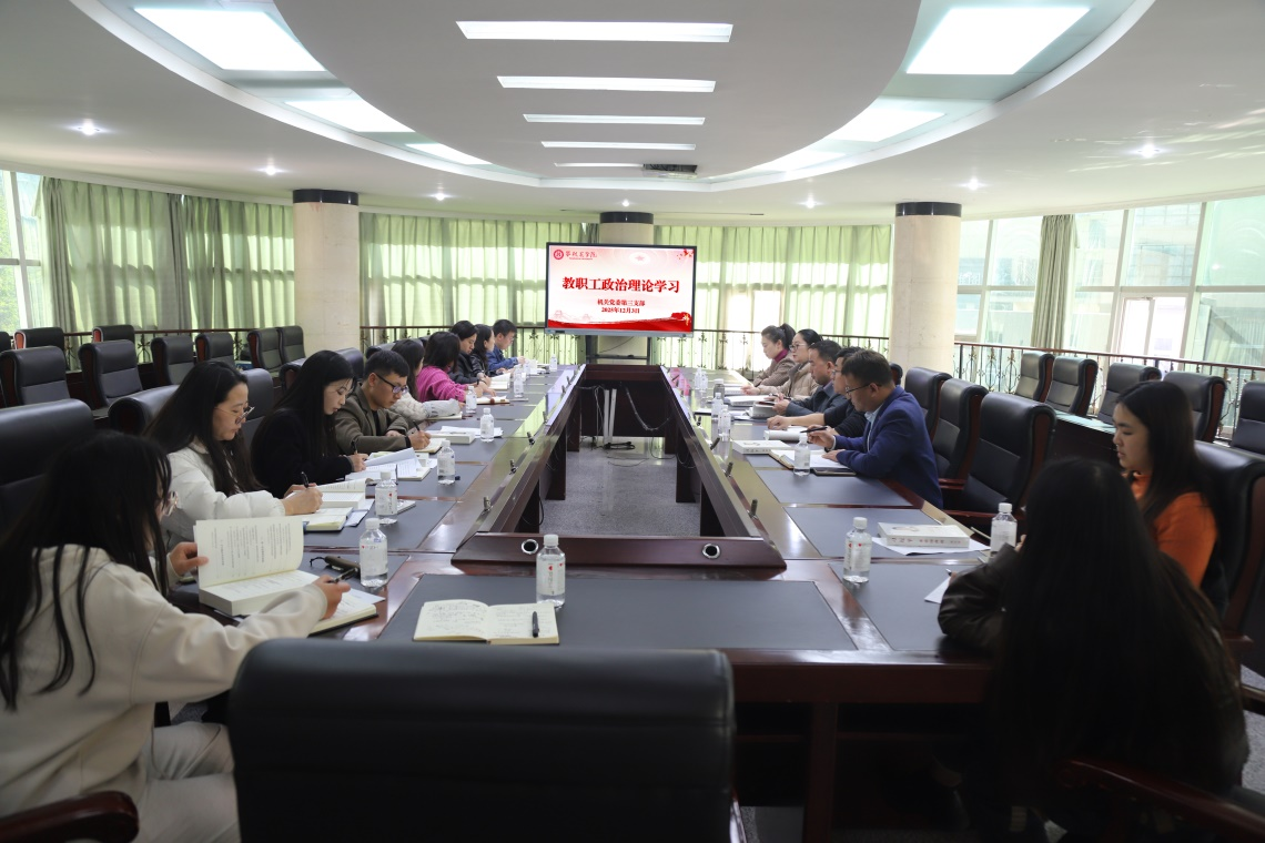 12月3日下午,机关党委第三支部在弘毅楼 400 室召开政治理论学习会,支部所辖党委宣传部、党委统战部和校团委全体教职工参加学习,会议由支部书记张勤主持。